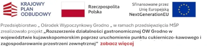Ośrodek Wypoczynkowy Grodno to przestrzeń, w której ważne chwile nabierają wyjątkowego charakteru. Położony w malowniczej wsi Mirakowo, w gminie Chełmża, zaledwie 18 km od Torunia, zachwyca ciszą, zielenią i widokiem na Jezioro Grodzieńskie. To idealne miejsce na wesele, przyjęcie rodzinne, konferencję czy firmowy event – z dala od miejskiego zgiełku, w otoczeniu starodrzewia i natury.Od 1998 roku specjalizujemy się w usługach hotelarskich i gastronomicznych, oferując Gościom pełne zaplecze – eleganckie sale, plenerowe przestrzenie, własną kuchnię z doskonałym cateringiem oraz komfortowe noclegi. Każde wydarzenie przygotowujemy kompleksowo – od dekoracji po obsługę kelnerską, aby mogli się Państwo w pełni cieszyć chwilą.